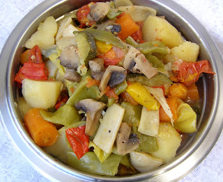 cukinia 1 większa, ziemniaki 1 kg, czosnek 1 główka, cebula 3 sztuki, marchew 1/2 kg,