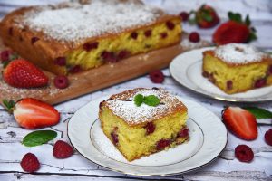 Uwielbiam rabarbar, a najbardziej ciasta z nim. Przechodząc przez stoisko warzywne uderzył mnie świeży kolor i zwabiła zapach. Chociaż nie planowałam piec ciasta, zmieniłam zdanie. Kupiłam kilogram i szczęśliwa jakby mi ktoś w kieszeń napluł wróciła zabrać się za wypieki. Lubię ciasto drożdżowe, ale nie chciałam żeby było zbyt grube