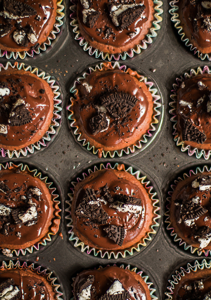 Babeczki z ciastkami oreo i masłem orzechowym, nazywane czasami babeczkami w paski…