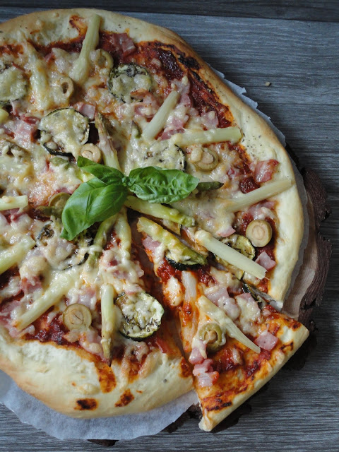 Pizzę uwielbia chyba każdy. Korzystając z sezonu szparagowego polecam przygotować tą ze szparagami, szynka i boczkiem. Cienkie, włoskie ciasto, gęsty sos pomidorowy i aromatyczne szparagi to gwarancja sukcesu.