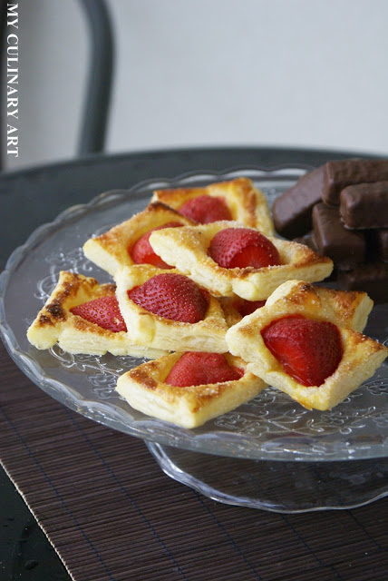 Prosty, szybki w przygotowaniu i do tego uroczy i pyszny deser z ciasta francuskiego i truskawek 🙂 Zapraszam do przygotowań!