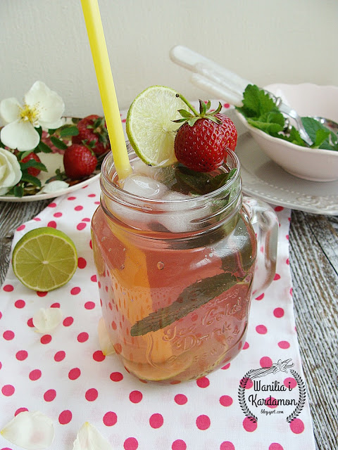 Upalny dzień wręcz prosi się o szklankę zimnego napoju z lodem, lemoniada z rabarbaru i truskawek ze szczyptą limonowego smaku, doskonale ugasi pragnienie. Delektowanie się nim pod parasolem sprawia wielką przyjemność, polecam!