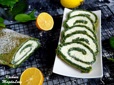 Rolada szpinakowa na słodko… z masą sernikową o smaku cytrynowym. Ciasto biszkoptowe…