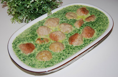 Delikatne pulpety z mięsa indyczego, a wszystko zatopione w zielonym sosie. Sos zrobiony na bazie szpinaku i słodkiej śmietanki. Wspaniałe pyszne mięsko. Podałam je z ziemniakami i surówką z rzodkiewki. Może i Wy skusicie się na taki obiad?
