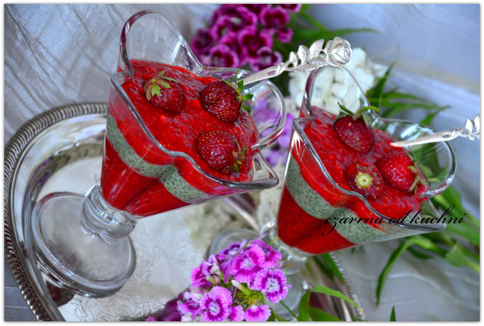 Składniki: ok. 1/2 kg truskawek 1/2 galaretki truskawkowej 1 szklanka mleka 1 łyżka syropu klonowego 3,5 łyżki nasion chia 1 łyżeczka młodego jęczmienia Przygotowanie: Truskawki obrać z szypułek i zmiksować …