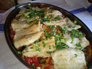 Delikatne zapiekane warzywa, oraz aromatyczna ryba to propozycja na lekki posiłek, wprost idealny na tę porę roku.