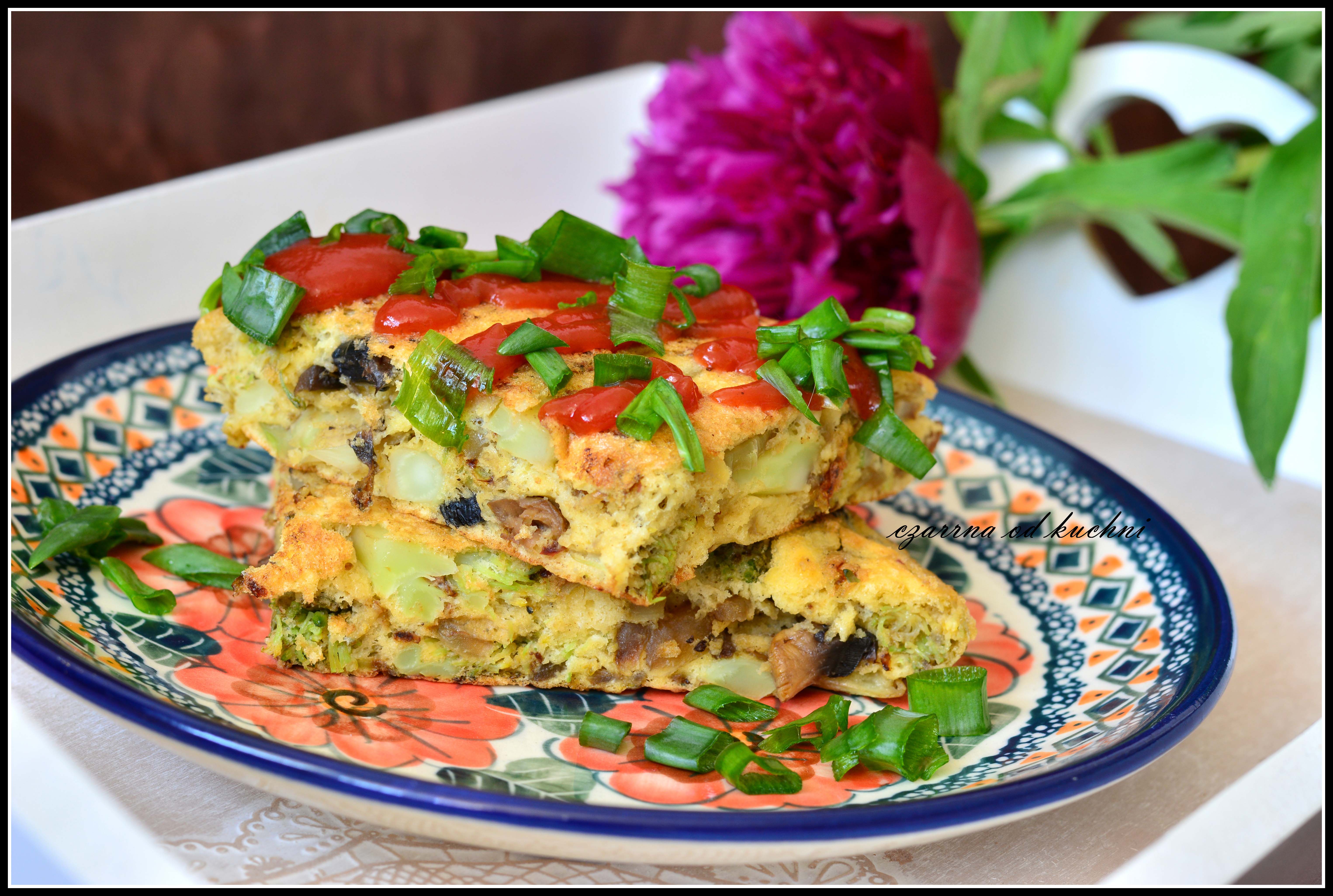 Składniki: 2 jajka 3 łyżki mąki kilka pieczarek kilka różyczek brokuła 1…