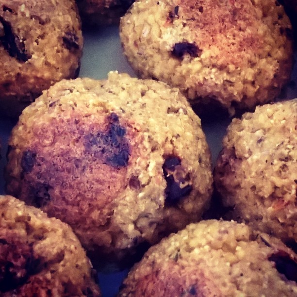 Pomysł na obiad, na przekąskę do zabrania w lunchboxie np. do pracy – klopsiki jaglane z suszonymi pomidorami.
