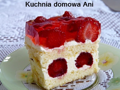 Sezon na truskawki powoli się kończy. Niestety z racji natłoku pracy i upałów nie upiekłam ani jednego ciasta, ale podaję Wam przepis na ciasto, które piekłam rok temu. Klasyk – biszkopt, krem budyniowy, świeże truskawki i galaretka 🙂
