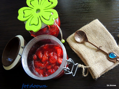 Konfitura pachnie obłędnie, ma soczysty czerwony kolor, ma w sobie duże kawałki owoców, jest latem, czerwcem i truskawkową rozkoszą.