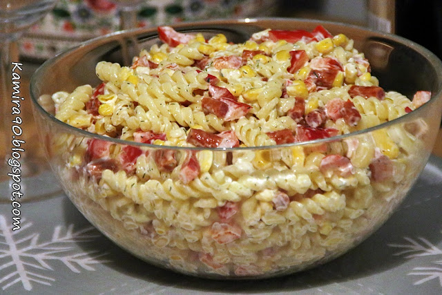 Imprezowa sałatka z kabanosem i sosem czosnkowym zawierająca klika składników i szybka…
