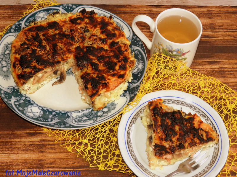 Placek z twarożku z pieczarkami i łososiem – omlet keto