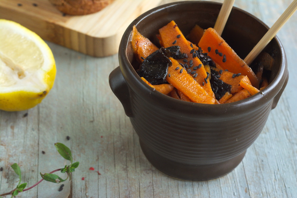 Kanapki z awokado, marynowaną marchewką i czarnym sezamem