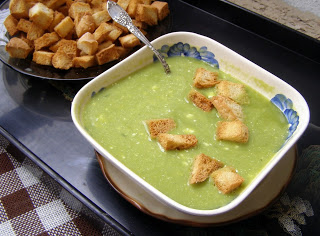 woda 2 litry, zielony groszek 1 kg/w łupinkach, masło 2 łyżki, czosnek granulowany 1/2 łyżeczki,