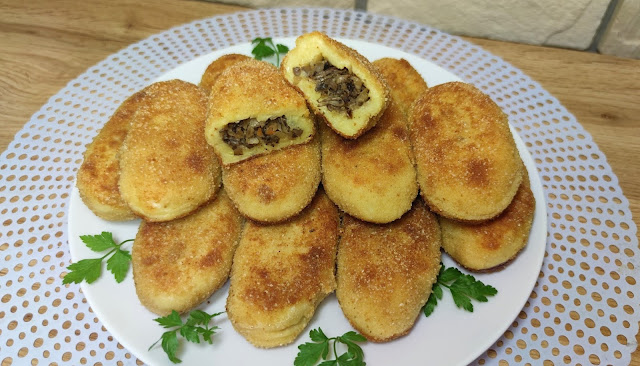 Kotlety ziemniaczane z kapustą kiszoną i pieczarkami