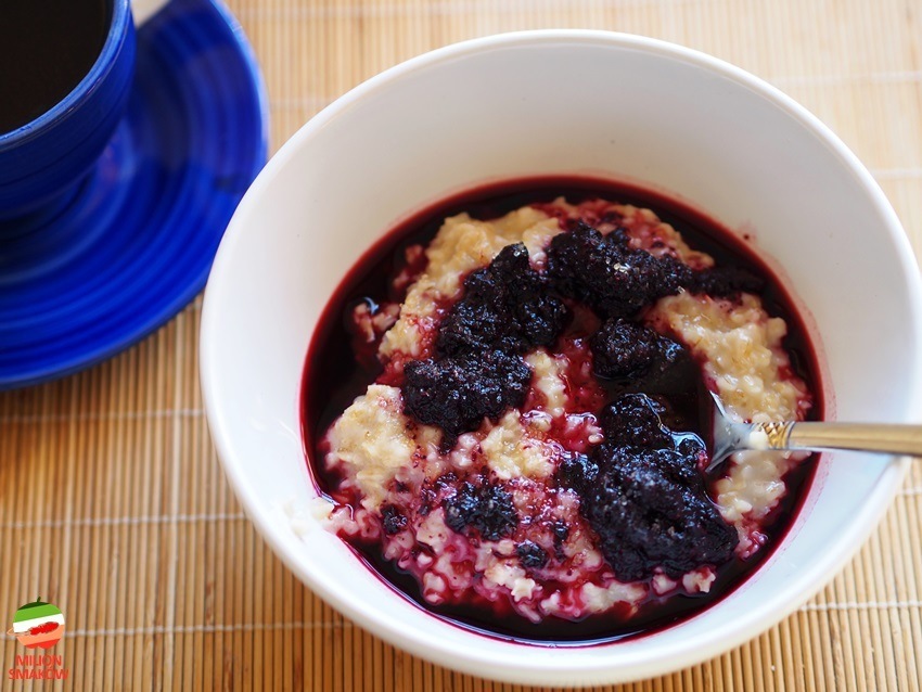 Kolejna z owsianek na naszym blogu w myśl zasady, że owsianka świetnie sprawdza się na śniadanie z naprawdę szeroką gamą dodatków. Tym razem mus jagodowy – lekko słodki, ale bez przesady – musi dominować smak jagód 😉