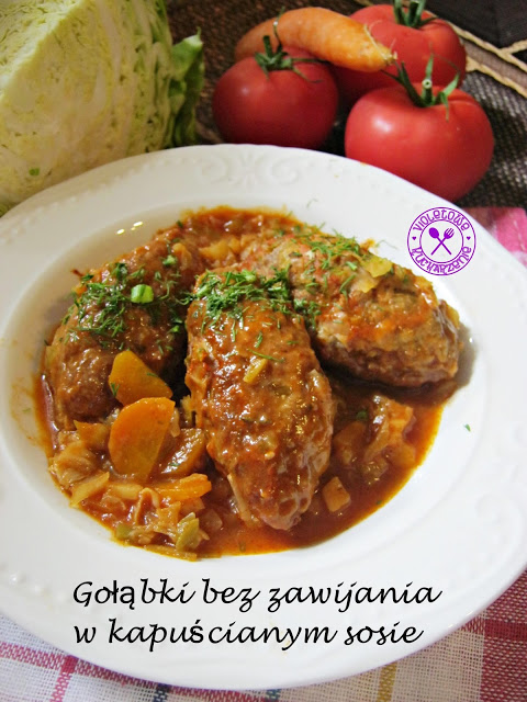 Błyskawiczne gołąbki bez zawijania w kapuścianym pomidorowym sosie. Młode warzywa sprawiają że danie jest niezwykle apetyczne i szybkie w przygotowaniu.