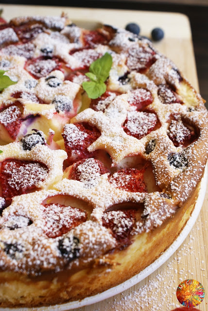 Pyszny kremowy sernik z dodatkiem prawdziwej wanilii pieczony z truskawkami i borówką…