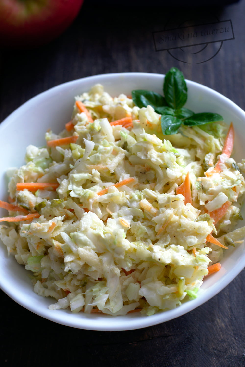 Tradycyjna surówka z kapusty pekińskiej i marchewki, wzbogacona o dodatek słodkiego jabłka…