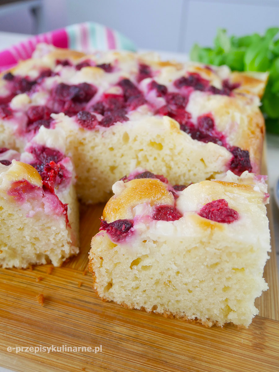 Jogurtowe ciasto Pewniaczek z budyniem i malinami na wierzchu to pyszny domowy…