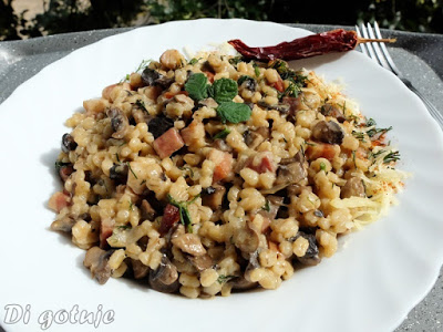 Przepis autorski (mój).Lubicie kaszę? Kaszotto możecie zrobić z Waszą ulubiona kaszą.Ja tym razem postawiłam na pęczak, który nie zawsze jest doceniany w naszej kuchni.A szkoda…, ponieważ jest