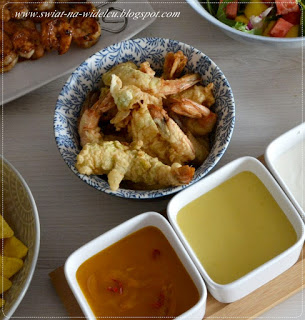 Krewetki w tempurze z młodym ryżem i sosem mango chilli