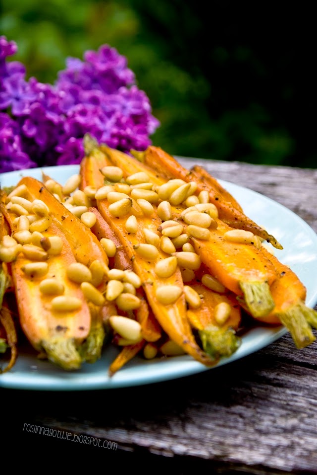 Karmelizowane młode marchewki z orzeszkami piniowymi
