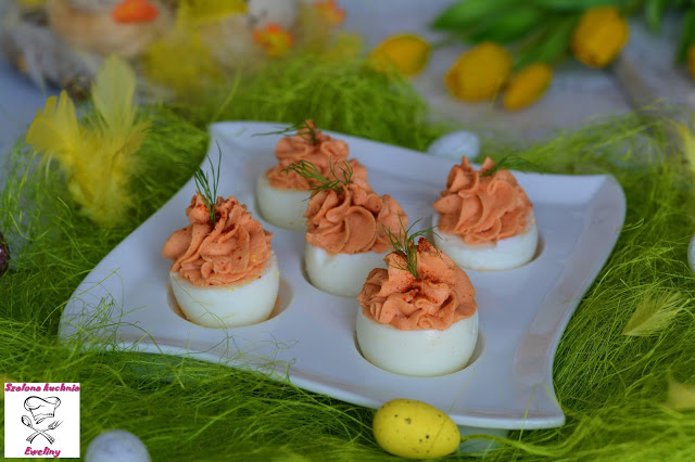 Jajka faszerowane pachnącą wędzonką pastą pomidorową to ciekawy pomysł na przekąskę jajeczną…