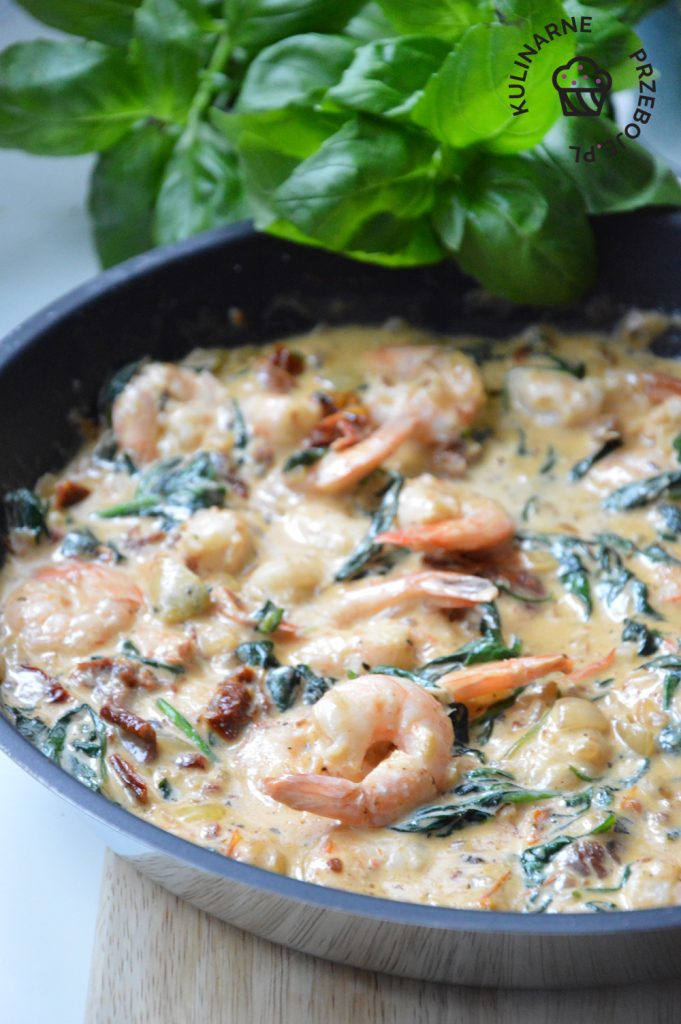 Krewetki w kremowym sosie ze szpinakiem i suszonymi pomidorami – to mój…