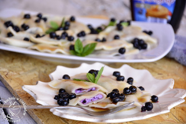 Delikatne ciasto i pyszny farsz z białego sera i jagód leśnych. Tak przygotowane pierożki posmakują każdemu: i dużemu i małemu. Dodatkowo kuszą swoim pięknym, fioletowym kolorem.
