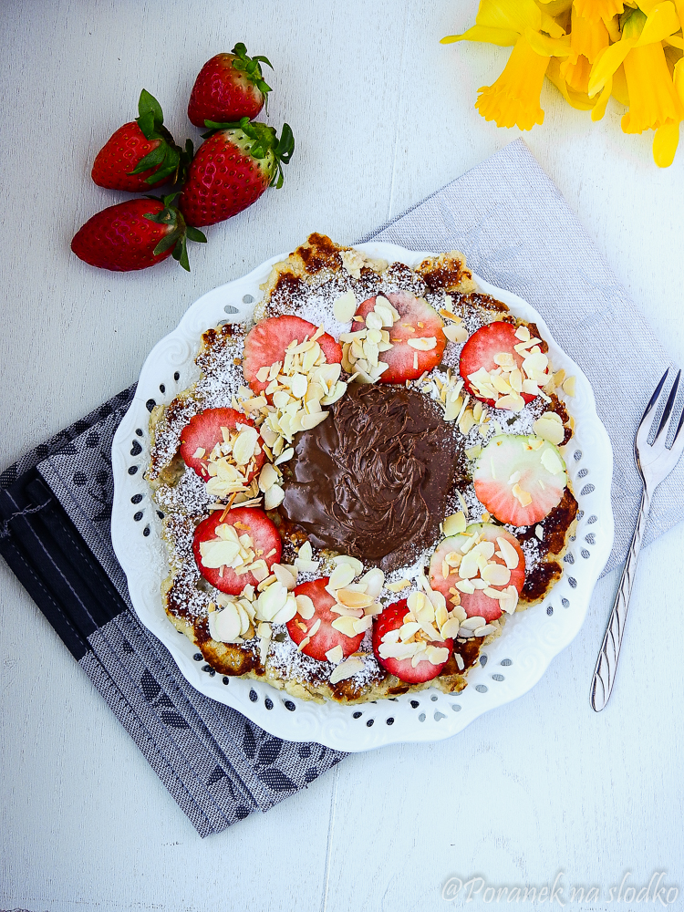Ciasto Książę z Bajki – biszkopt z kremem straciatella i truskawkami