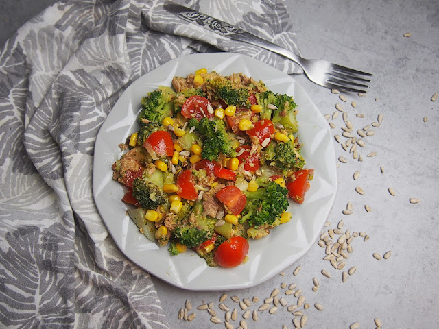 Sałatka jest lekka, ale sycąca i z pewnością sprawdzi się jako lunch. Można ją jeść na zimno i na ciepło i ciężko się zdecydować w której wersji smakuje lepiej.