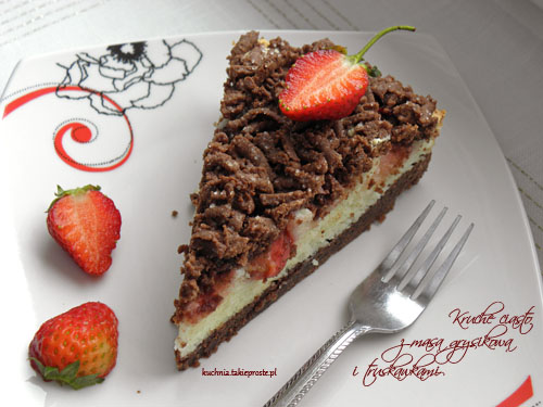 Mniam! Pyszne kakaowe kruche ciasto z masą grysikową i truskawkami. Pycha! Masa…