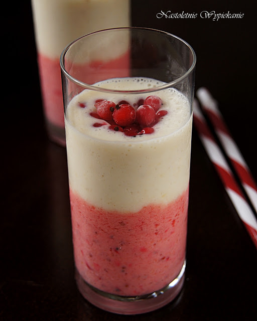 Smakowity, dwukolorowy koktajl dla każdego! Dolna, kwaskowata część z porzeczek doskonale równoważy słodycz górnej części z bananów. Zdrowo, szybko i energetycznie. Sam spróbuj!