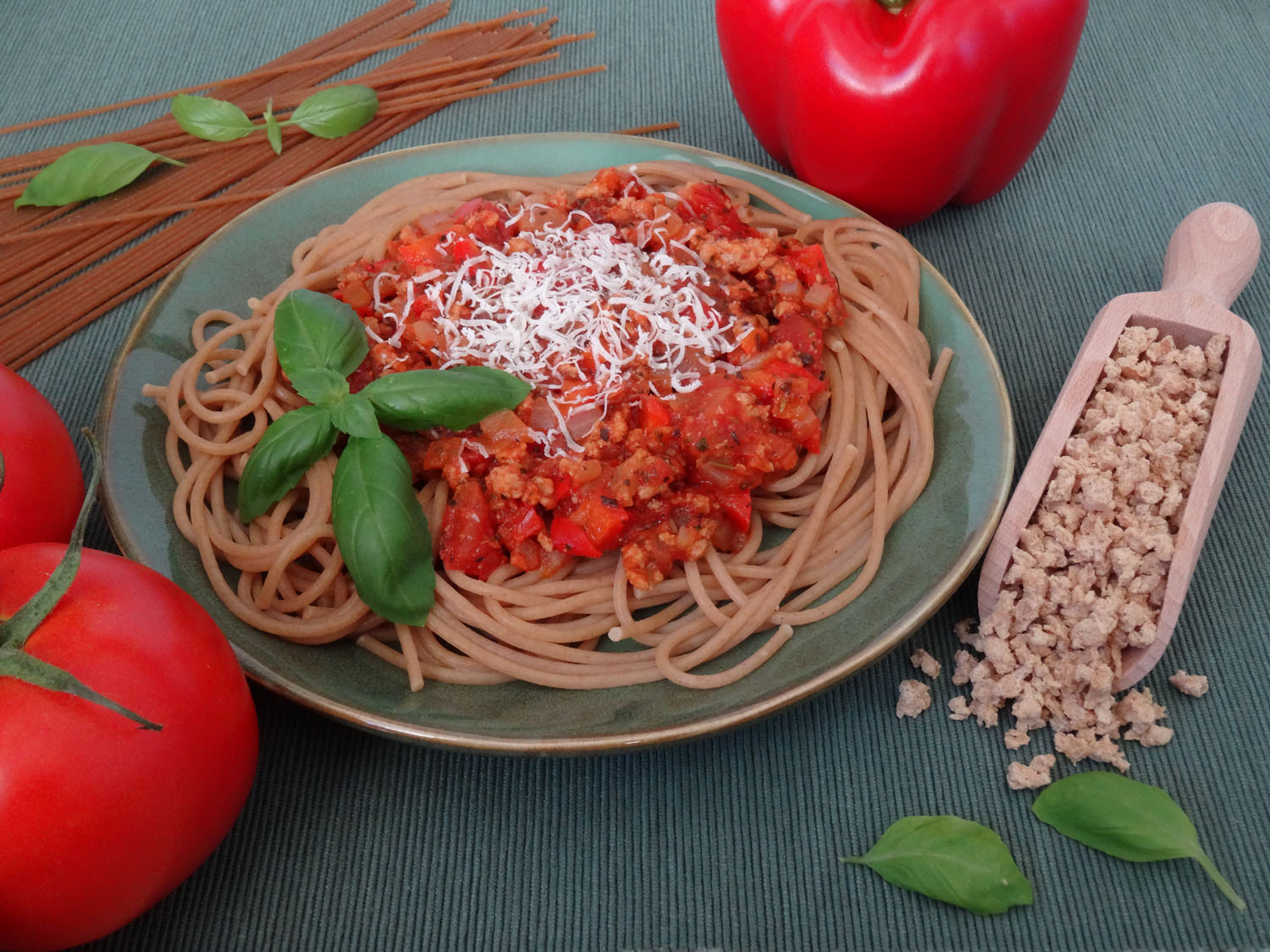 Spaghetti z granulatem sojowym