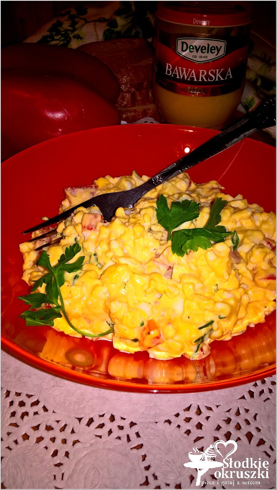 Uwielbiam pasty kanapkowe. Są idealne na śniadanie, jak i kolację. Dziś polecam Wam pastę kanapkową z papryką, pietruszką i musztardą bawarską, która idealne wzbogaca jej smak. Pastę robi się niezwykle szybko i… równie szybko znika. Mojej rodzinie takie połączenie bardzo smakowało, dlatego szczerze Wam je polecam.