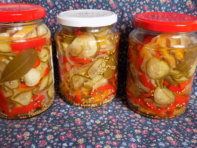 Składniki: 2 kg ogórków gruntowych3 czerwone papryki1 żółta papryka3 marchewki0.5 kg cebulizalewa4…