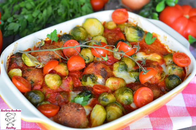 Zapiekana brukselka z pulpecikami w sosie pomidorowym