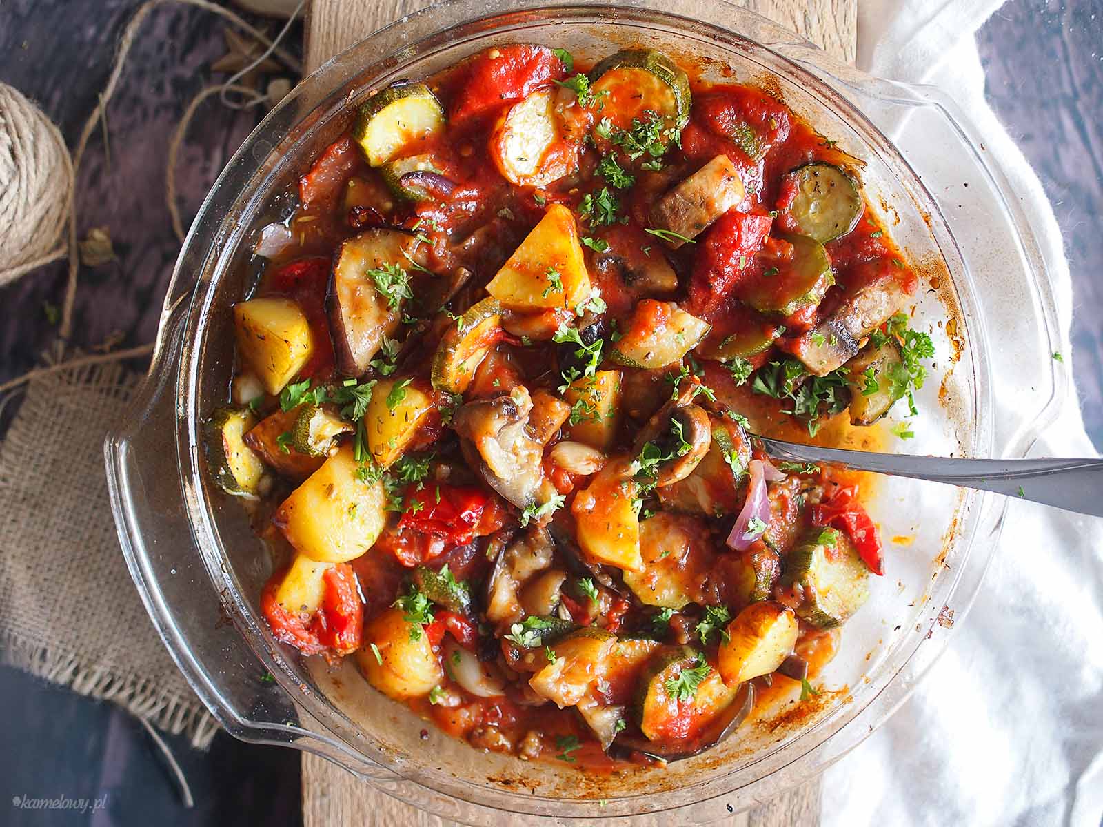 Pieczone letnie warzywa w pomidorach / Roasted summer vegetables with tomato sauce