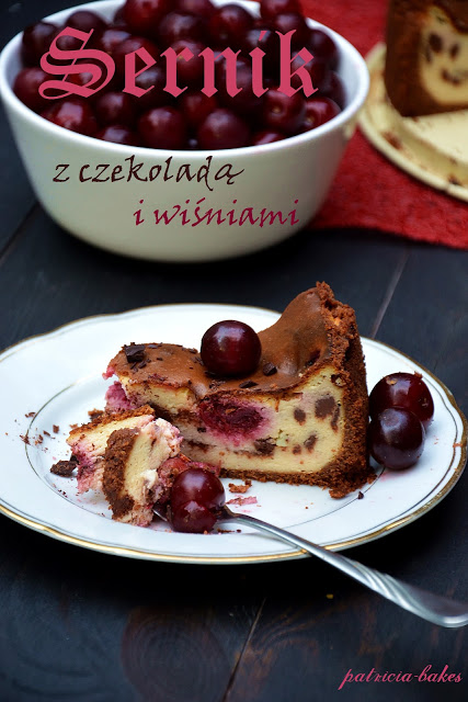 Znakomity sernik wzbogacony o wiśnie i kawałki gorzkiej czekolady, o którym to połączeniu nie od dziś wiadomo, że jest bardzo udane 🙂 Do wypróbowania zarówno ze świeżymi, jak i mrożonymi owocami – bardzo polecam!