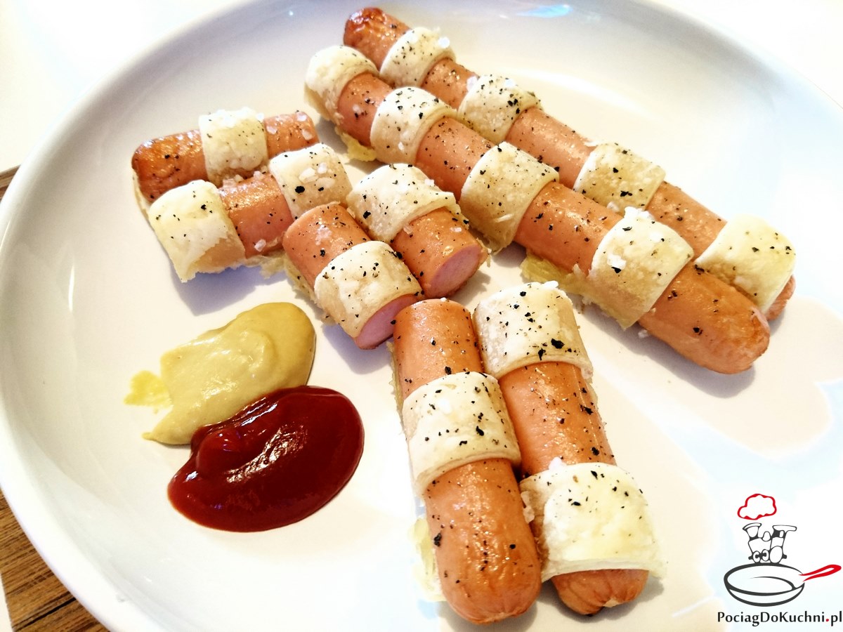 Kiełbaski w cieście francuskim – proste, szybkie, niedrogie, a w tej formie potrafią naprawdę zaskoczyć. Kiełbaski w cieście francuskim przygotowane takim sposobem po angielsku nazywane są „pigs in quilt” czyli świnki w patchworku. Rzeczywiście – pieczone kiełbaski w cieście francuskim zawijanym naprzemiennie (naprawdę nie jest to skomplikowane) wyglądają jak patchworkowy