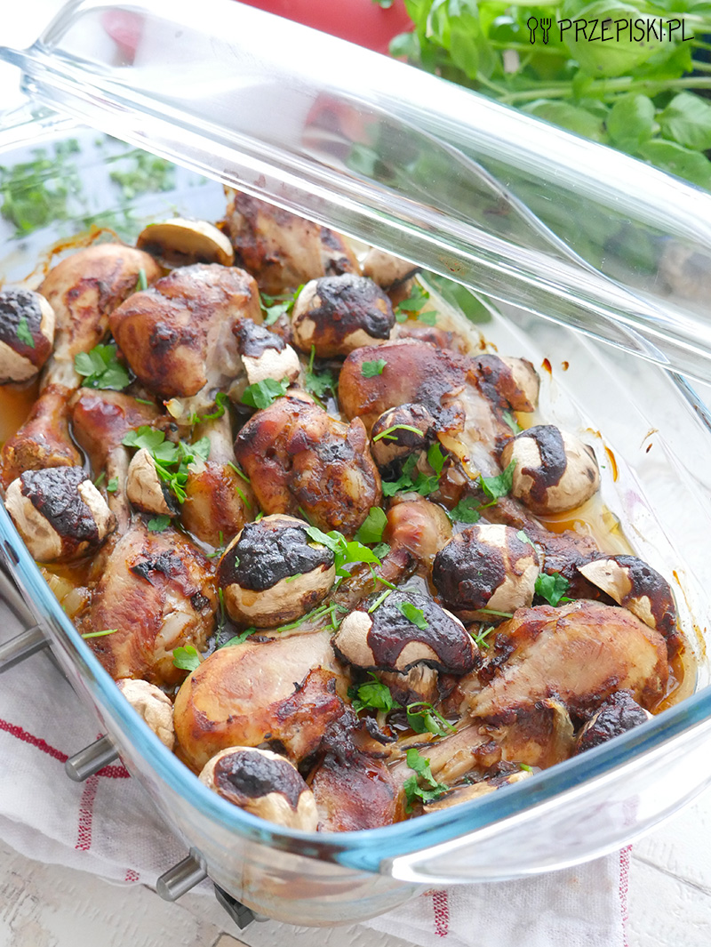 Pałki z kurczaka zapiekane z pieczarkami to świetny pomysł na smaczny obiad…