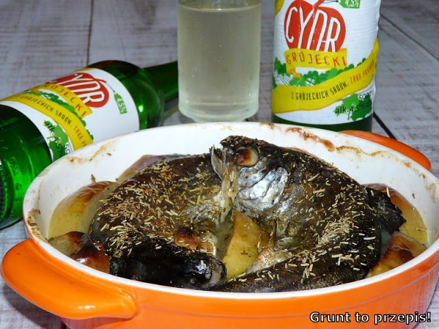 Ryba pieczona w orzeźwiającym aromacie cydru i z aromatycznym dodatkiem świeżych jabłek