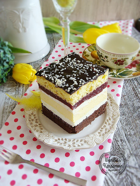 Ciasto, które choć pracochłonne to wspaniałe w smaku, spód na gorzkim biszkopcie…