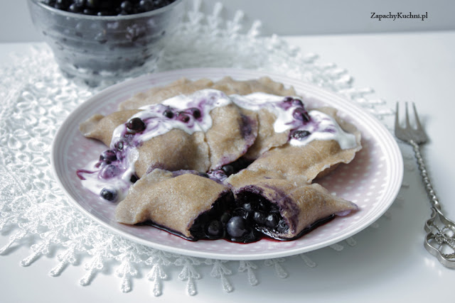 Kto ma ochotę na pyszną rozkosz podniebienia ? Dla chętnych polecam słodki posiłek w postaci pełnoziarnistych pierogów z jagodami.