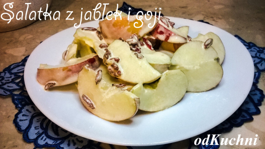 Składniki 2 jabłka 2 łyżki jagód Goji 1 żółtko 1 łyżeczka cukru…
