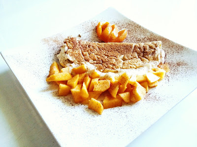 Dziś pyszna propozycja śniadania. Puszysty omlet z serkiem waniliowym i brzoskwiniami. Polecam! 🙂