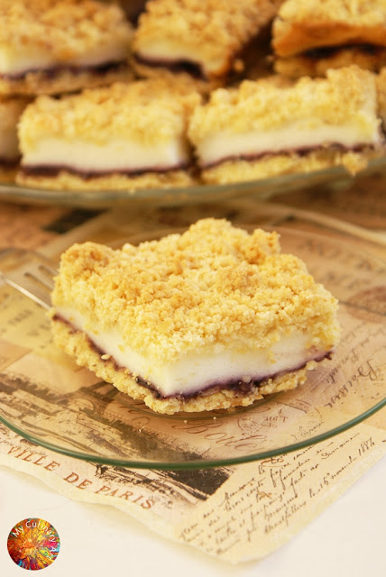 Pyszne delikatne ciasto na jogurtach greckich z kwaśnym dżemem porzeczkowym i kruszonką.…