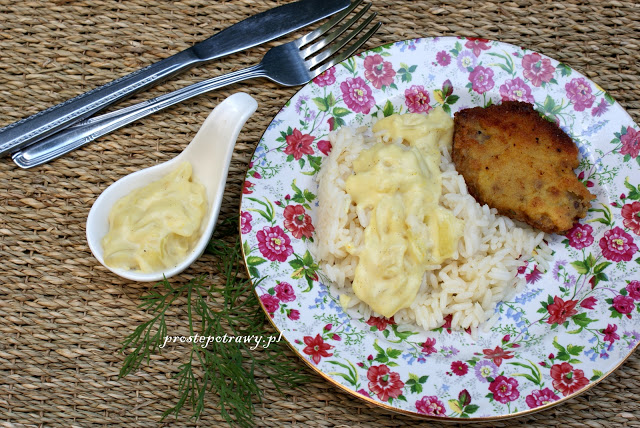 3-4 dag masła4 łyżeczki mąki3/4 szklanki mleka lub tyle samo śmietany słodkiej1 żółtkosólewentualnie dodatkowo około 1/2 szklanki rosołu, sok z cytrynyPrzygotowanie :Masło przesmażyć z mąką ciągle mieszając (ale nie zrumienić), odstawić z ogniaWlać mleko lub słodką śmietanę, mieszając zagotowaćJeśli sos jest zbyt gęsty dodać jeszcze