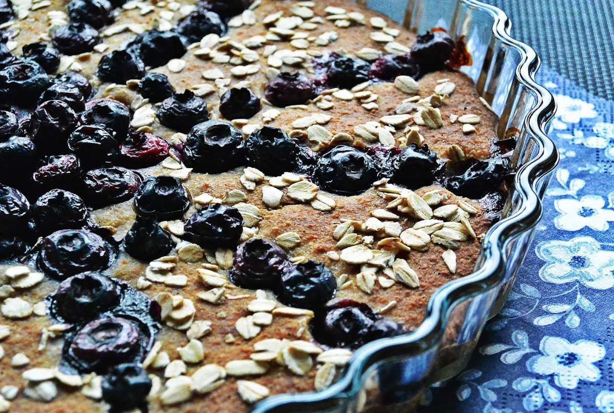Mąka owsiana to samo zdrowie. Jest bezglutenowa, bogata w białko oraz błonnik. Zawiera kwas linolowy, który działa przeciw miażdży. W mące owsianej znajdziemy żelazo, magnez, wapń, cynk, selen, mangan, fosfor oraz witaminę B1 i E. Dlatego to właśnie mąka owsiana jest głównym składnikiem tego ciasta. Idealnym uzupełnieniem jest miód